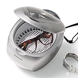 Ultrasonic Jewelry Cleaner and DVD Cleaner. No chemicals needed! Advanced soundwave technology uses plain tap water to remove dirt and tarnish, gently yet thoroughly, from delicate pieces. This chemical-free cleaning requires no special cleaning solutions or detergents and is kind to your valuables--its environmentally friendly, too. Ultra-easy, ultra-convenient. No scrubbing. No tedious trips to and from the jewelers. No expensive fees. Just fill the stainless steel tank with tap water and our ultrasonic cleaner will do the work for you! Use it whenever you want to see dazzling results in minutes. For jewelry, eyeglasses, watches--and more. This versatile cleaner is perfect for any number of small household items that require special care--jewelry, eyeglasses, watches, DVDs and more. A watch hanger and eyeglass basket are included to help you keep your pieces organized, and with five timed cycles to choose from, you can pick the perfect cleaning cycle for the quantity and cleanliness of your items. Order your worry-free, environmentally friendly Ultrasonic Jewelry Cleaner from Brookstone today!