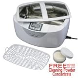 Digital Ultrasonic Cleaner-professional grade with heater for better cleaning effect. Frequency: 42,000 KHz. Power 70W at 110V plus Heater 90W. Timer: 180, 280, 380, 480, 90 seconds with digital control. Large tank capacity: 2.5 lit (5.3 pints). Unit dimension: 29x22.3x18.5 cm (11.4"x8.8"x7.3") Warranty: 1 year.